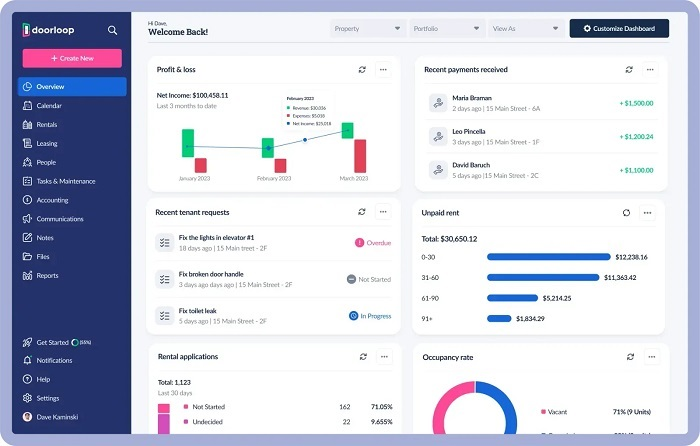 DoorLoop is an all-in-one property management software designed for residential, commercial properties, and community associations. It boasts an extensive feature set and a user-friendly interface, including full-suite accounting capabilities.