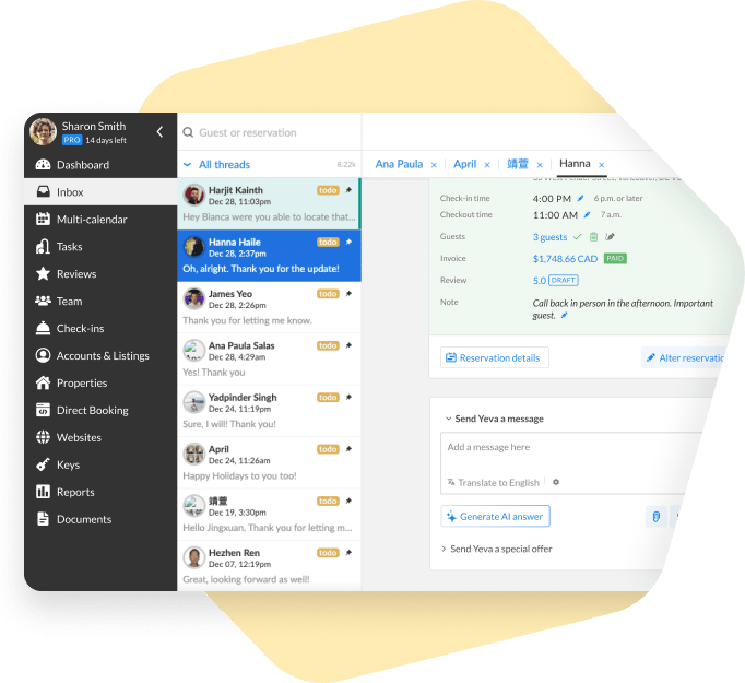 Delivering a fantastic guest experience is a dream of Airbnb hosts. Property managers can also benefit from these tools to enhance their operational effectiveness and customer service. Harness the power of Airbnb automation tools and automated messages for personalized check-ins and check-outs, customized pre-arrival forms to learn guest needs, seamless key management, and automated post-stay guest reviews. Enhance every stay effortlessly and professionally.